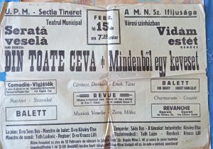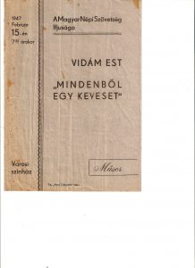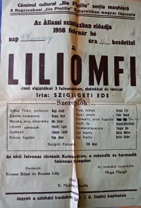 Articole Limba Maghiară Magyar Népi Szövetség, Nagyszeben 2 noiembrie 2022 / 1952 -Ünnepi műsor 1957-Liliomfi, Ilie Pintilie Kultúrotthon 1958-Liliomfi, Ilie Pintilie Kultúrotthon Ludas Matyi Vidam est -1947, február Vidám est -Kalmár Krauss Lilly rendezése