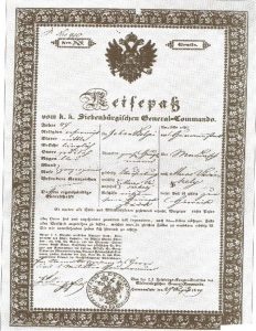 - kép. Bolyai János kapitány útlevelét a Nagyszebenben székelő erdélyi General Komando bocsátotta ki 1849-ben, Bolyai Johan névre. A leirás szerint B.J. 47 éves, középmagas, kék szemű, Marosvásárhelyt született,református vallású. A cimerben a Monarchiát jelképező kétfejű sas látható
